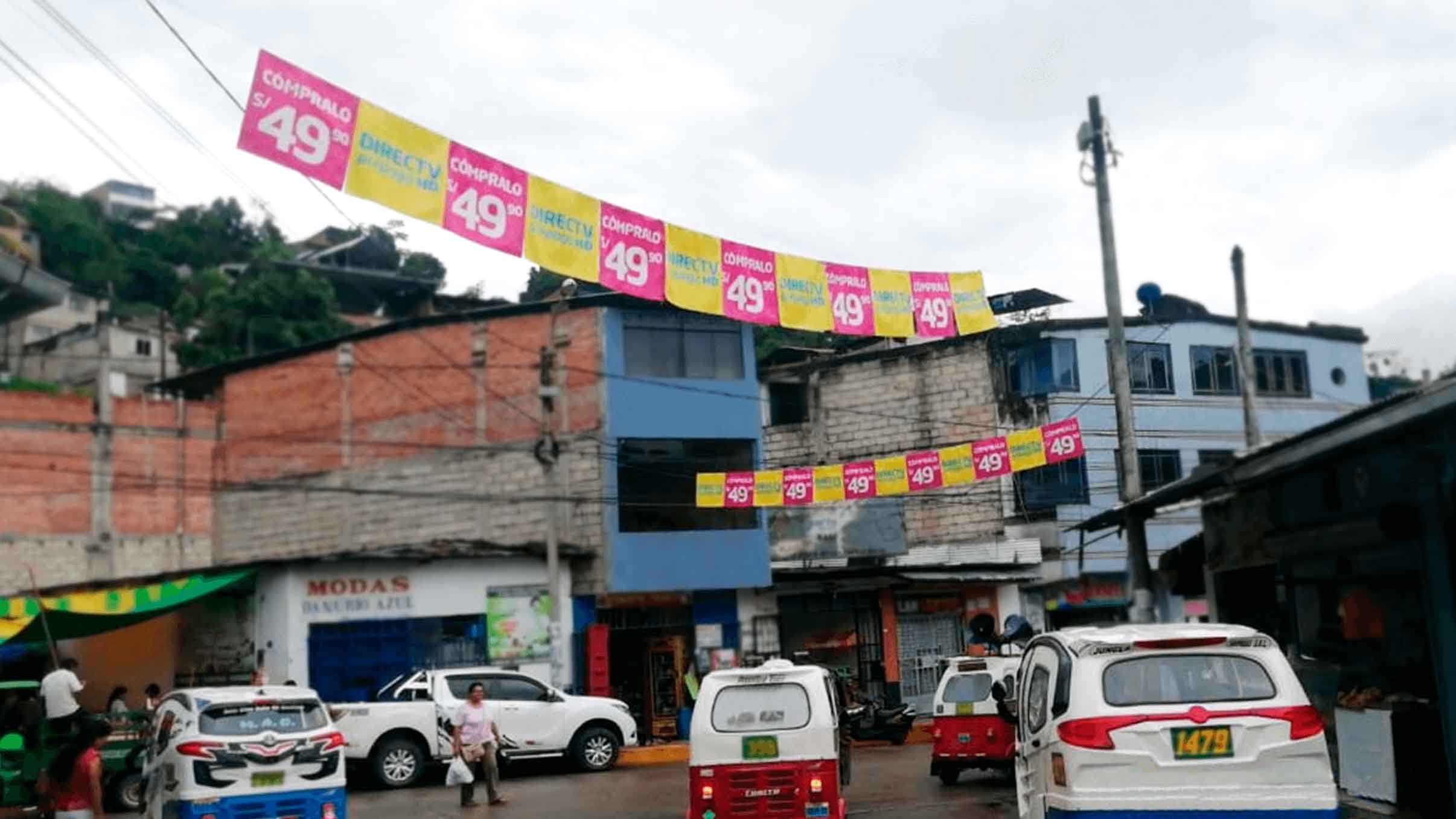- Para esta campaña definió como medio de comunicación principal a la vía pública, y a través de una campaña de guerrilla marketing daría a conocer su promoción en 2 ciudades en el país: La Libertad y Junín. Los elementos de frecuencia elegidos para esta campaña promocional fueron las guirnaldas y pasacalles, que gracias a su efectividad, son las más recomendadas para este tipo de campañas.